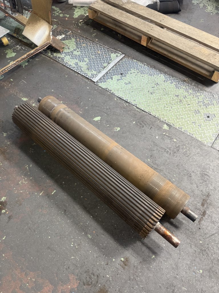 お客さんの製品出口のコンベヤの駆動ローラーと従動ローラーの交換を施工しました。