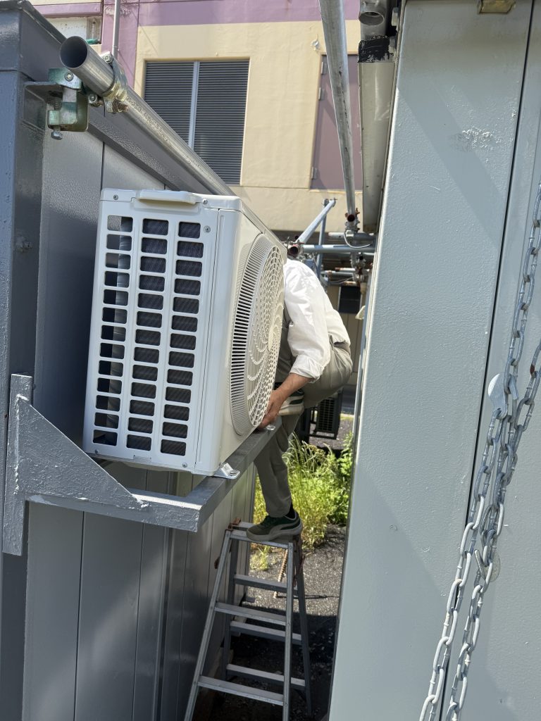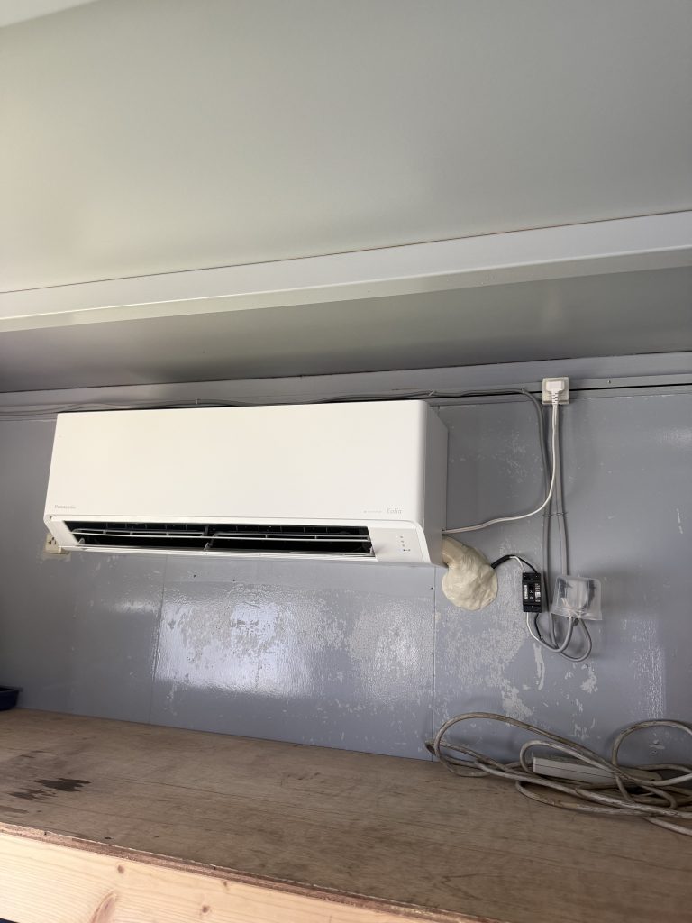 弊社の協力会社が普段駐在している詰め所にエアコンを取り付ける話になったため、急遽取り付けに行ってきました。